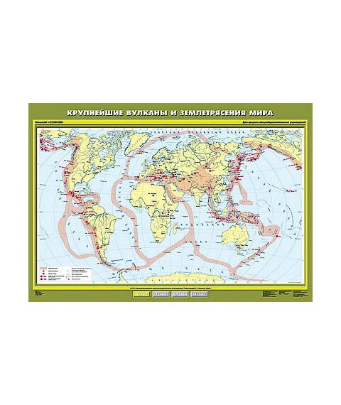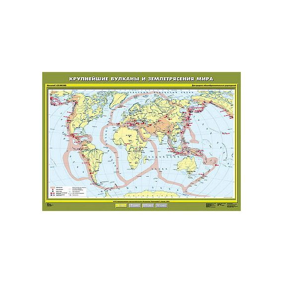 Описание Учебн. карта "Крупнейшие землетрясения и вулканические извержения" 100х140