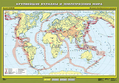 Описание Учебн. карта "Крупнейшие землетрясения и вулканические извержения" 100х140