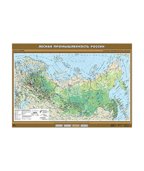 Описание Учебн. карта "Лесная промышленность России" 100х140