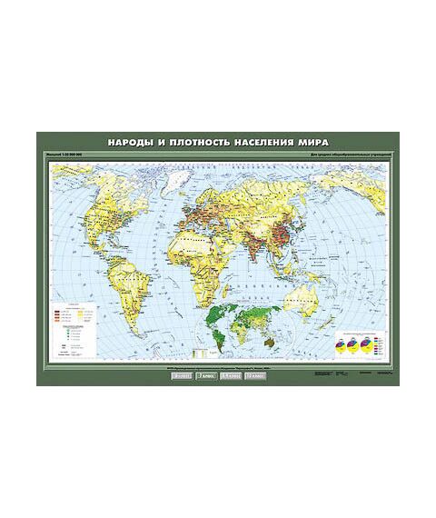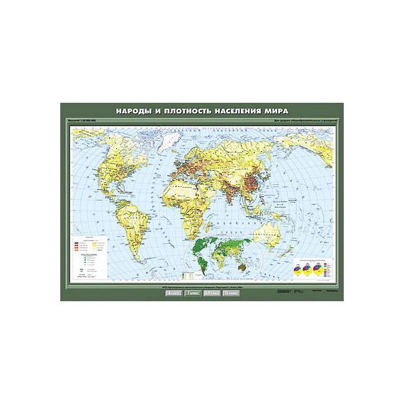 Описание Учебн. карта "Народы и плотность населения мира" 100х140