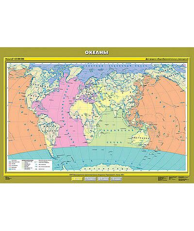 На карте показаны границы океанов, бассейны стока внутренних вод.