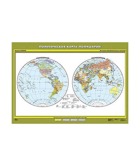 Описание Учебн. карта "Политическая карта полушарий" 100х140