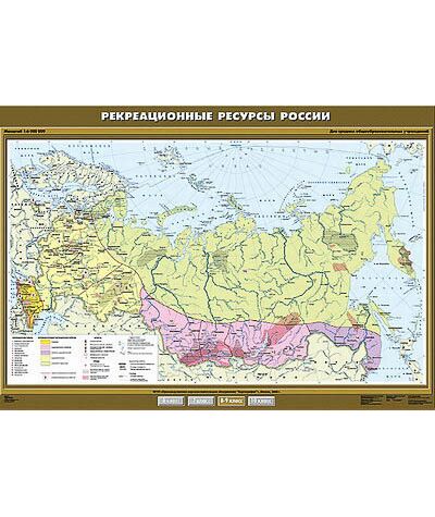 Наличие товара Учебн. карта "Рекреационные ресурсы России" 100х140