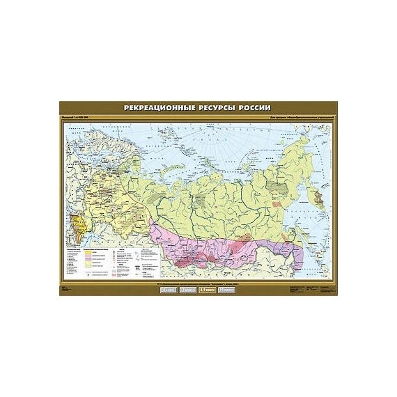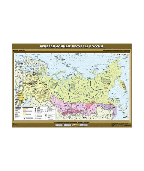 Описание Учебн. карта "Рекреационные ресурсы России" 100х140