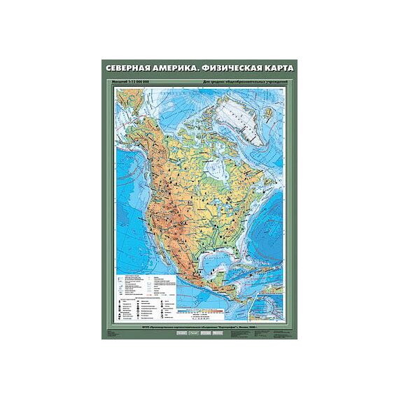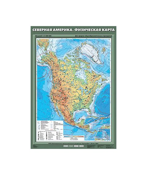 Описание Учебн. карта "Северная Америка. Физическая карта" 70х100