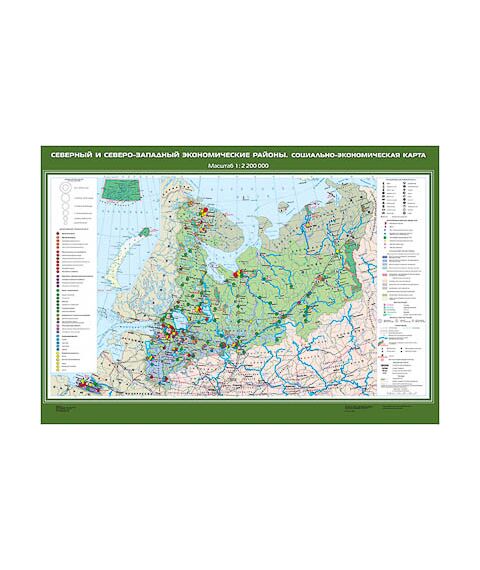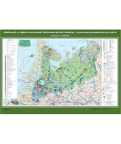Описание Учебн. карта "Северный и Северо-Западный экономические районы.Социально-экономическая карта" 100х140