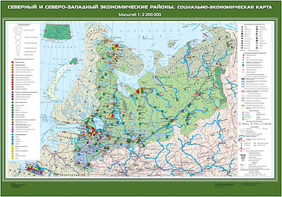 Описание Учебн. карта "Северный и Северо-Западный экономические районы.Социально-экономическая карта" 100х140