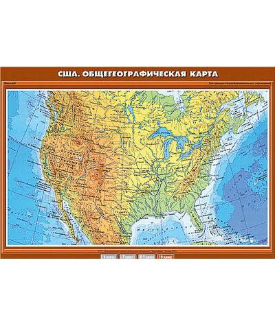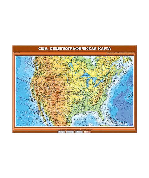 Учебн. карта "США. Общегеографическая карта" 70х100