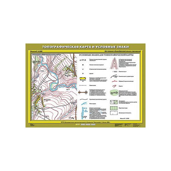 Наличие товара Учебн. карта "Топографическая карта и условные знаки" 70х100