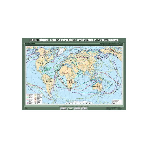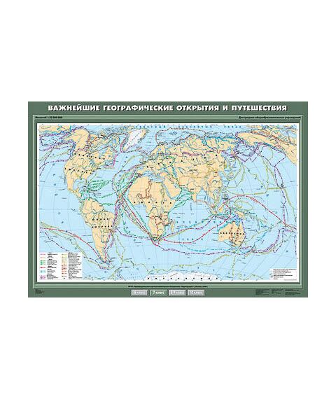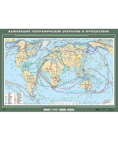 Описание Учебн. карта "Важнейшие географические открытия и путешествия" 100х140