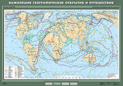 Описание Учебн. карта "Важнейшие географические открытия и путешествия" 100х140
