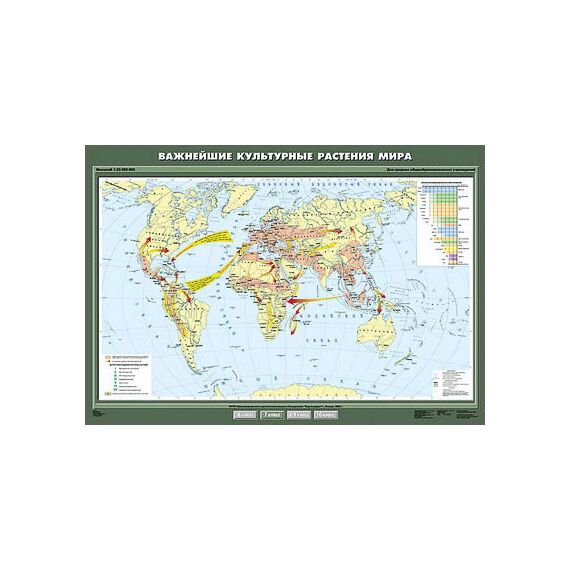 Описание Учебн. карта "Важнейшие культурные растения мира" 100х140