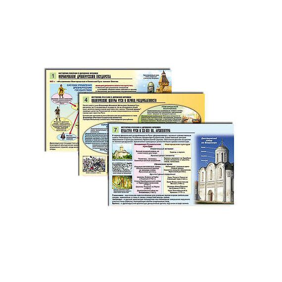 Описание Комплект таблиц по истории раздат. "История России с древних времен" (цвет., лам., 10 шт.)