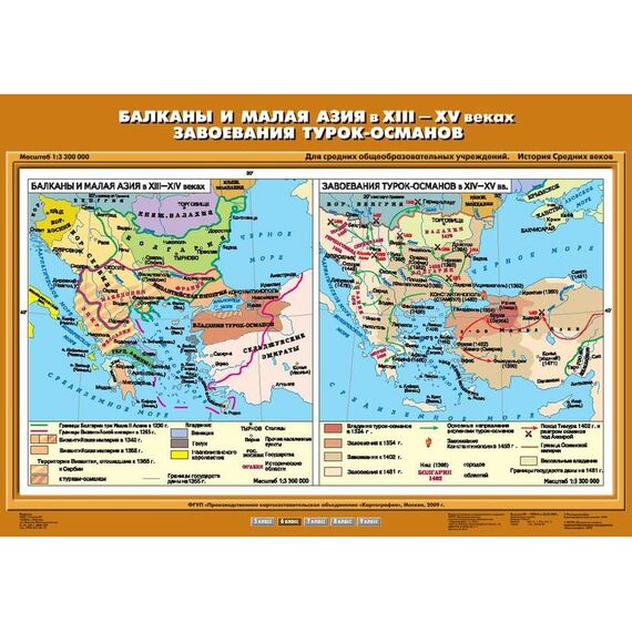 Учебн. карта "Балканы и Малая Азия в XIII-XV вв. Завоевания турок – османов" (70*100)