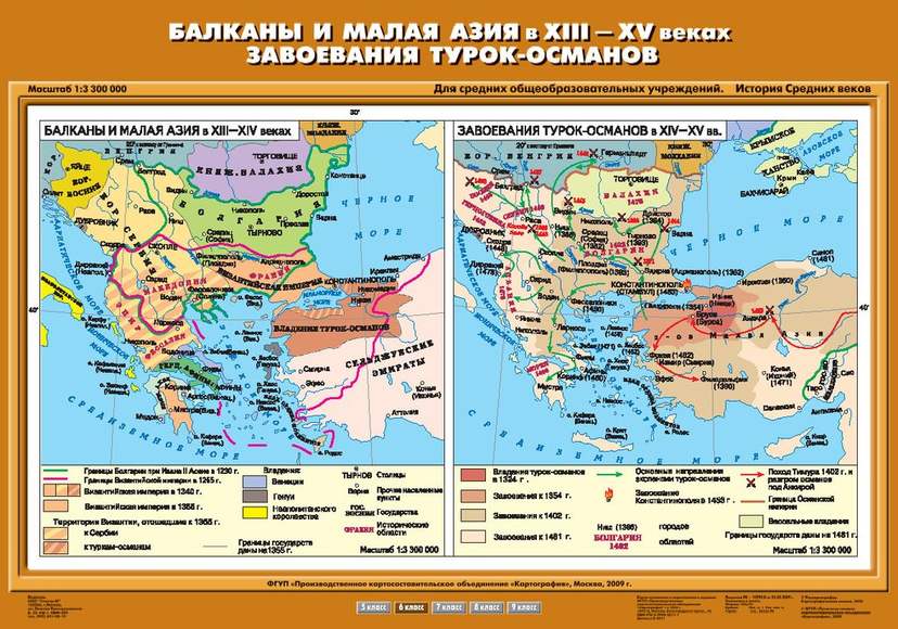 Описание Учебн. карта "Балканы и Малая Азия в XIII-XV вв. Завоевания турок – османов" (70*100)