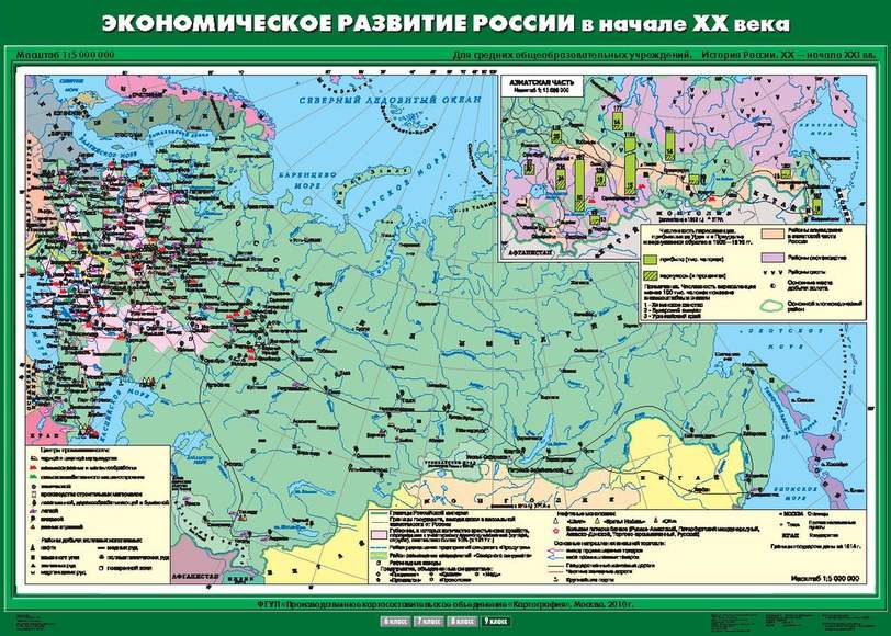 Описание Учебн. карта "Экономическое развитие России в начале XX в." (100*140)