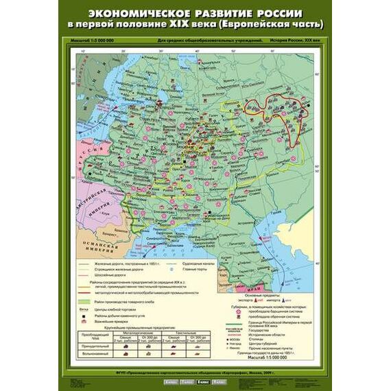 Описание Учебн. карта "Экономическое развитие России в первой половине XIX в (Европейская часть)" (70*100)
