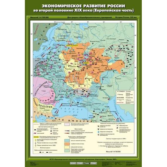 Описание Учебн. карта "Экономическое развитие России во второй половине XIX века (Европейская часть)"(70*100)