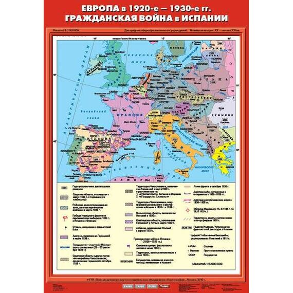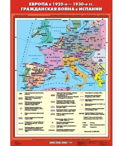 Описание Учебн. карта "Европа в 1920-е - 1930-е годы. Гражданская война в Испании" (70*100)