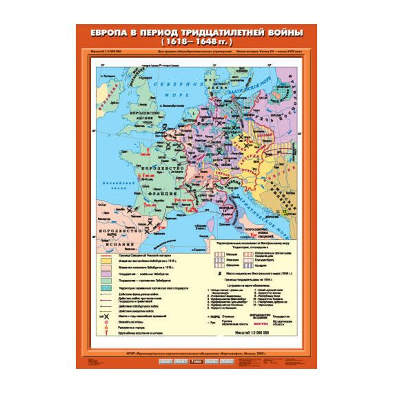 Описание Учебн. карта "Европа в период Тридцатилетней войны (1618-1648 гг.)" (70*100)