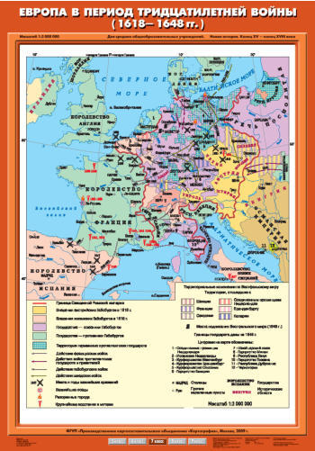 Описание Учебн. карта "Европа в период Тридцатилетней войны (1618-1648 гг.)" (70*100)
