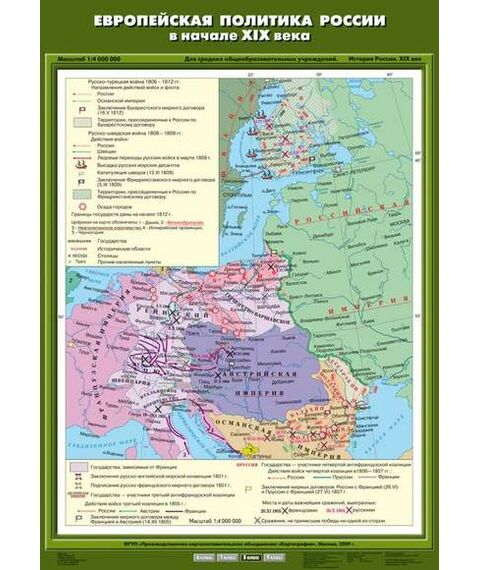 Описание Учебн. карта "Европейская политика России в начале ХIХ века" (70*100)