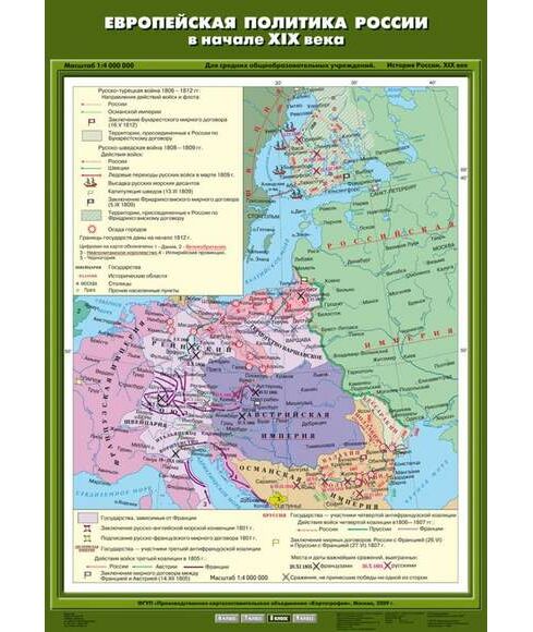 Учебн. карта "Европейская политика России в начале ХIХ века" (70*100)