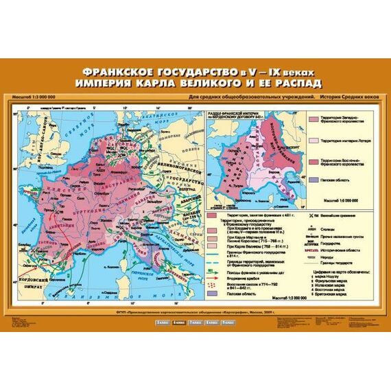 Описание Учебн. карта "Франкское государство в V-IX вв. Империя Карла Великого и ее распад" (70*100)