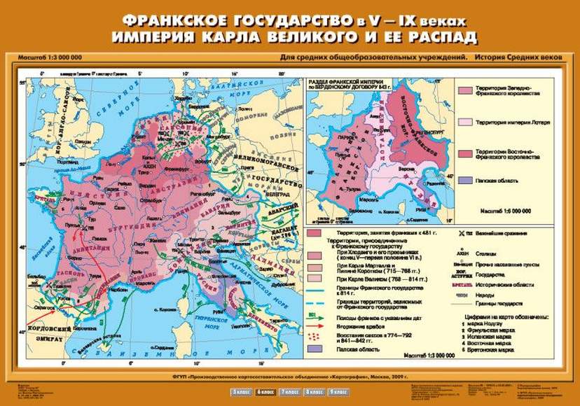 Описание Учебн. карта "Франкское государство в V-IX вв. Империя Карла Великого и ее распад" (70*100)