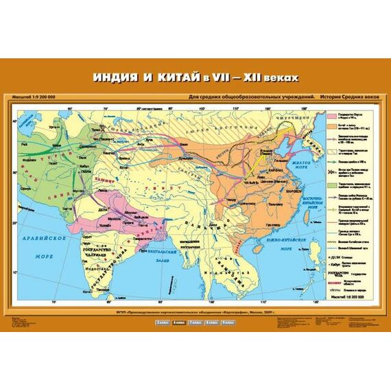 Описание Учебн. карта "Индия и Китай в VII-ХII вв." (70*100)