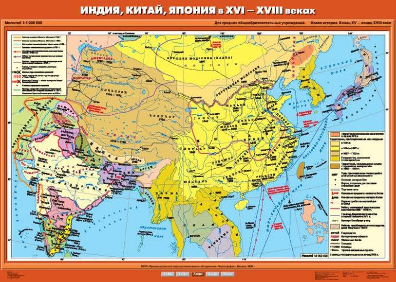 Описание Учебн. карта "Индия, Китай, Япония в XVI -XVIII вв." (100*140)