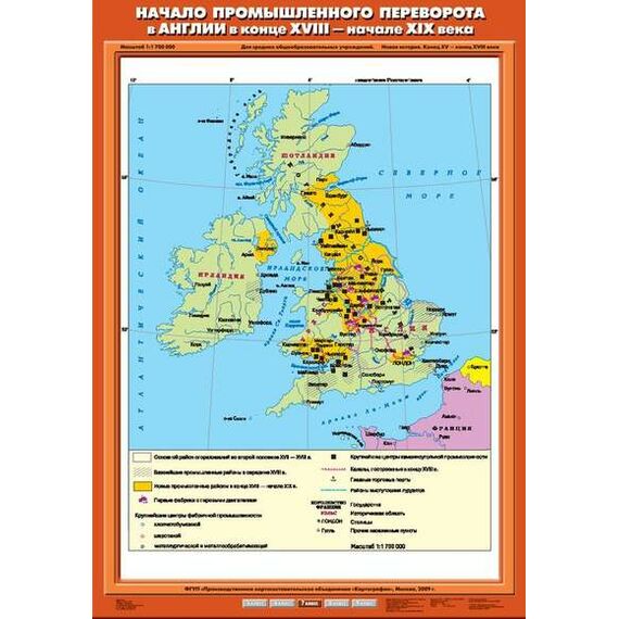 Описание Учебн. карта "Начало промышленного переворота в Англии в конце XVIII - начале XIX вв." (70*100)