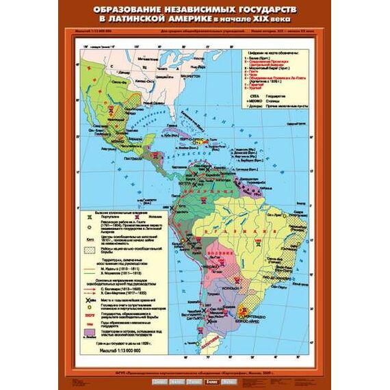 Описание Учебн. карта "Образование независимых государств в Латинской Америке в начале XIX в." (70*100)