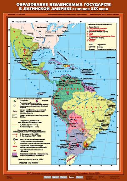 Описание Учебн. карта "Образование независимых государств в Латинской Америке в начале XIX в." (70*100)