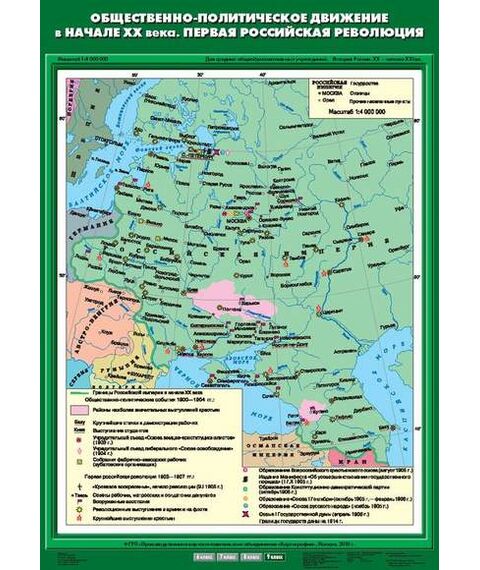 Описание Учебн. карта "Общественно-политическое движение в начале XX в. Первая российская революция" (70*100)