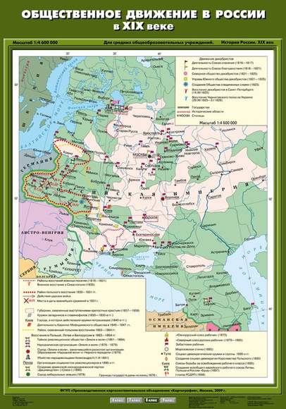 Описание Учебн. карта "Общественное движение в России в XIX веке" (70*100)