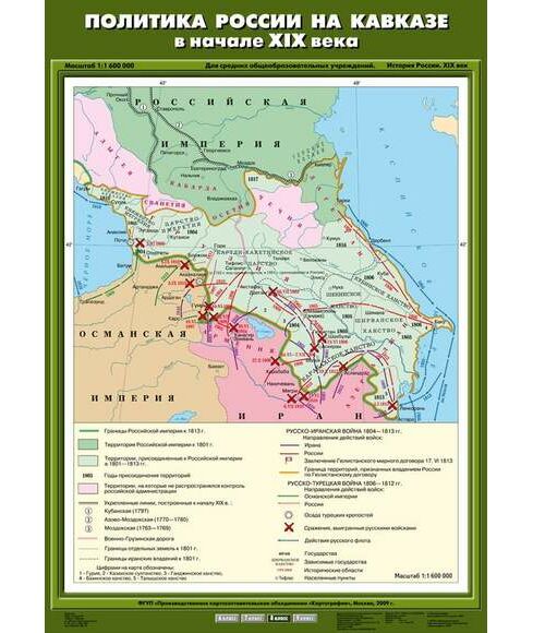 Учебн. карта "Политика России на Кавказе в начале XIX века" (70*100)