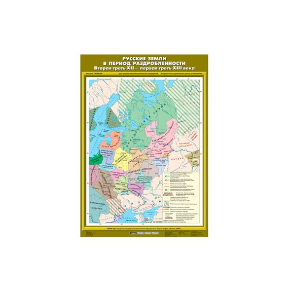 Описание Учебн. карта "Русские земли в период раздробленности.Вторая треть XII - первая третьXIII в" (70*100)