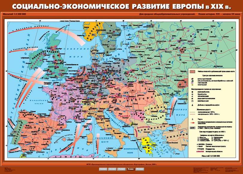 Описание Учебн. карта "Социально-экономическое развитие Европы в XIX в." (100*140)