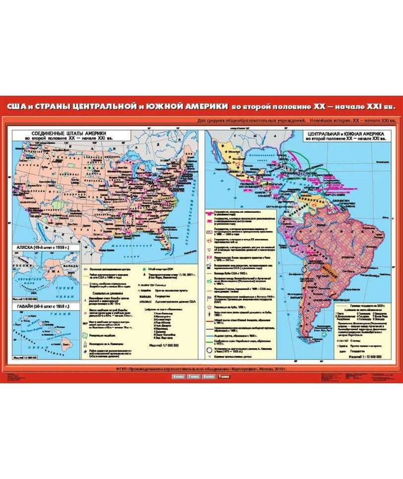 Описание Учебн. карта "США и страны Центральной и Южной Америки во втор пол. XX - нач. XXI в." (100*140)