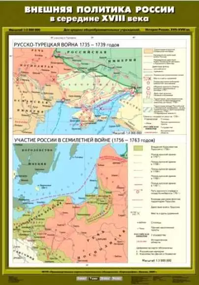 Описание Учебн. карта "Внешняя политика России в середине ХVIII века" (70*100)