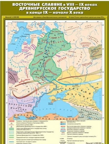 Описание Учебн. карта "Восточные славяне в VIII - IX веках. Древнерусское государство в конце IX - нач. X в"