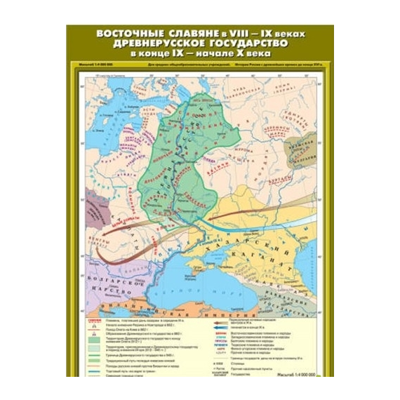 Учебн. карта "Восточные славяне в VIII - IX веках. Древнерусское государство в конце IX - нач. X в"