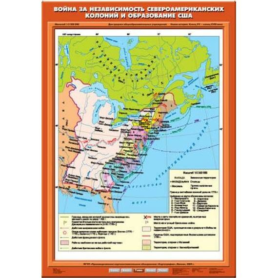 Описание Учебн. карта "Война за независимость североамериканских колоний и образование США" (70*100)