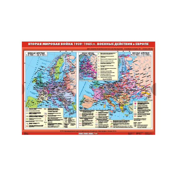 Описание Учебн. карта "Вторая мировая война в Европе (1939 - 1945 гг.) Военные действия в Европе" (100*140)