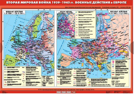 Описание Учебн. карта "Вторая мировая война в Европе (1939 - 1945 гг.) Военные действия в Европе" (100*140)