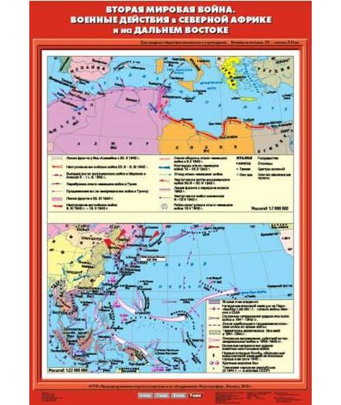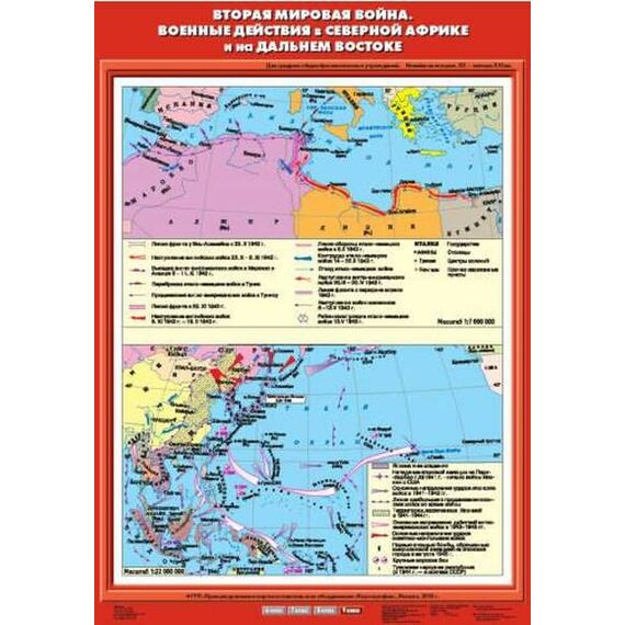 Описание Учебн. карта "Вторая мировая война. Военные действия в Северной Африке и на Дальнем Востоке"(70*100)
