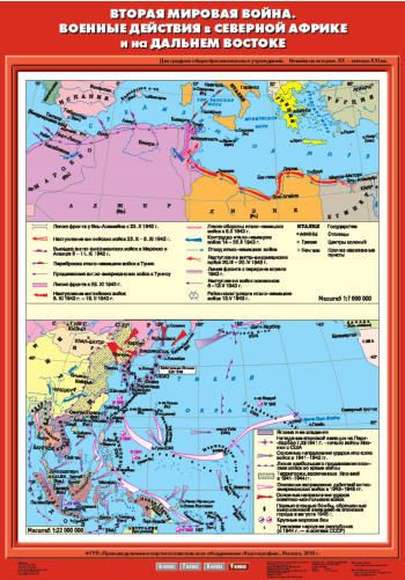 Описание Учебн. карта "Вторая мировая война. Военные действия в Северной Африке и на Дальнем Востоке"(70*100)