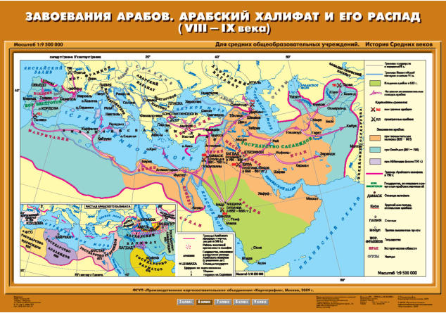 Учебн. карта "Завоевания арабов. Арабский халифат и его распад (VIII-IX вв.)" (70*100)