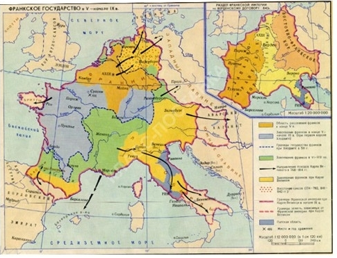 Учебная карта "Франкское государство в V - середине IX в.в." (матовое, 1-стороннее лам.)